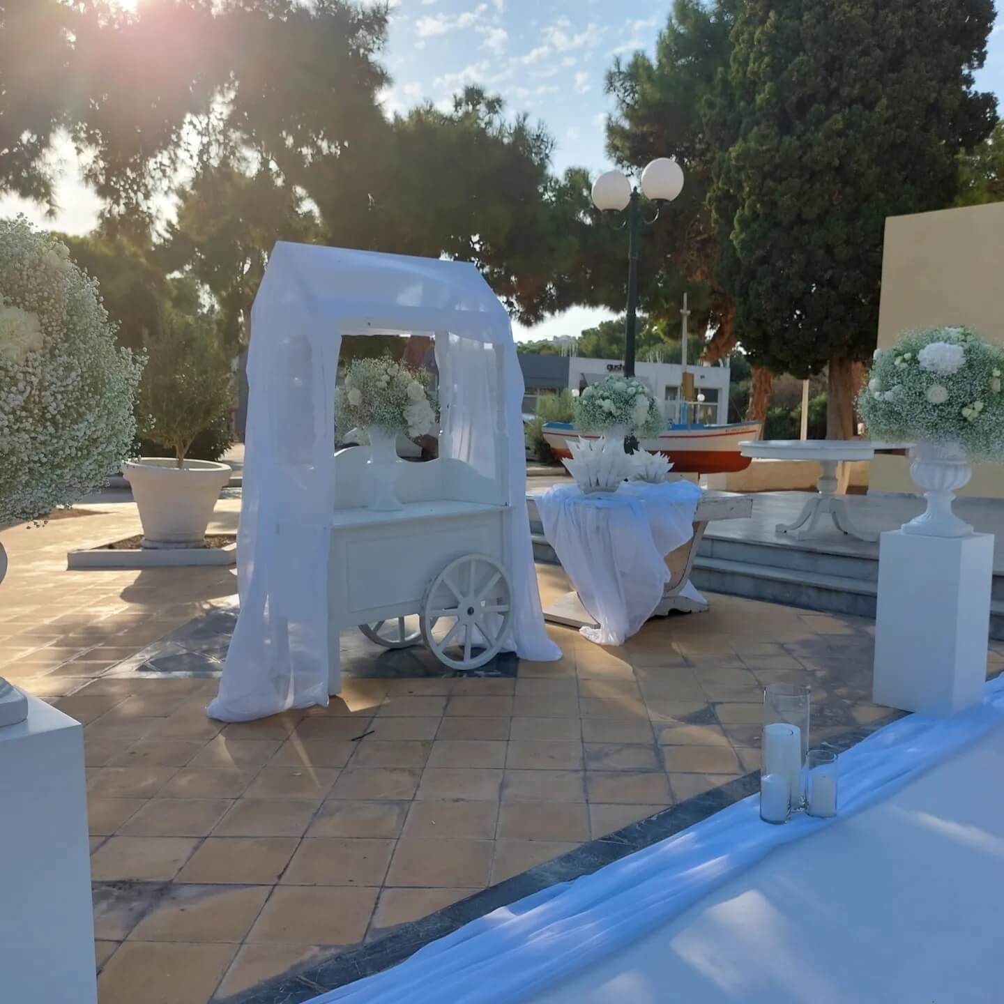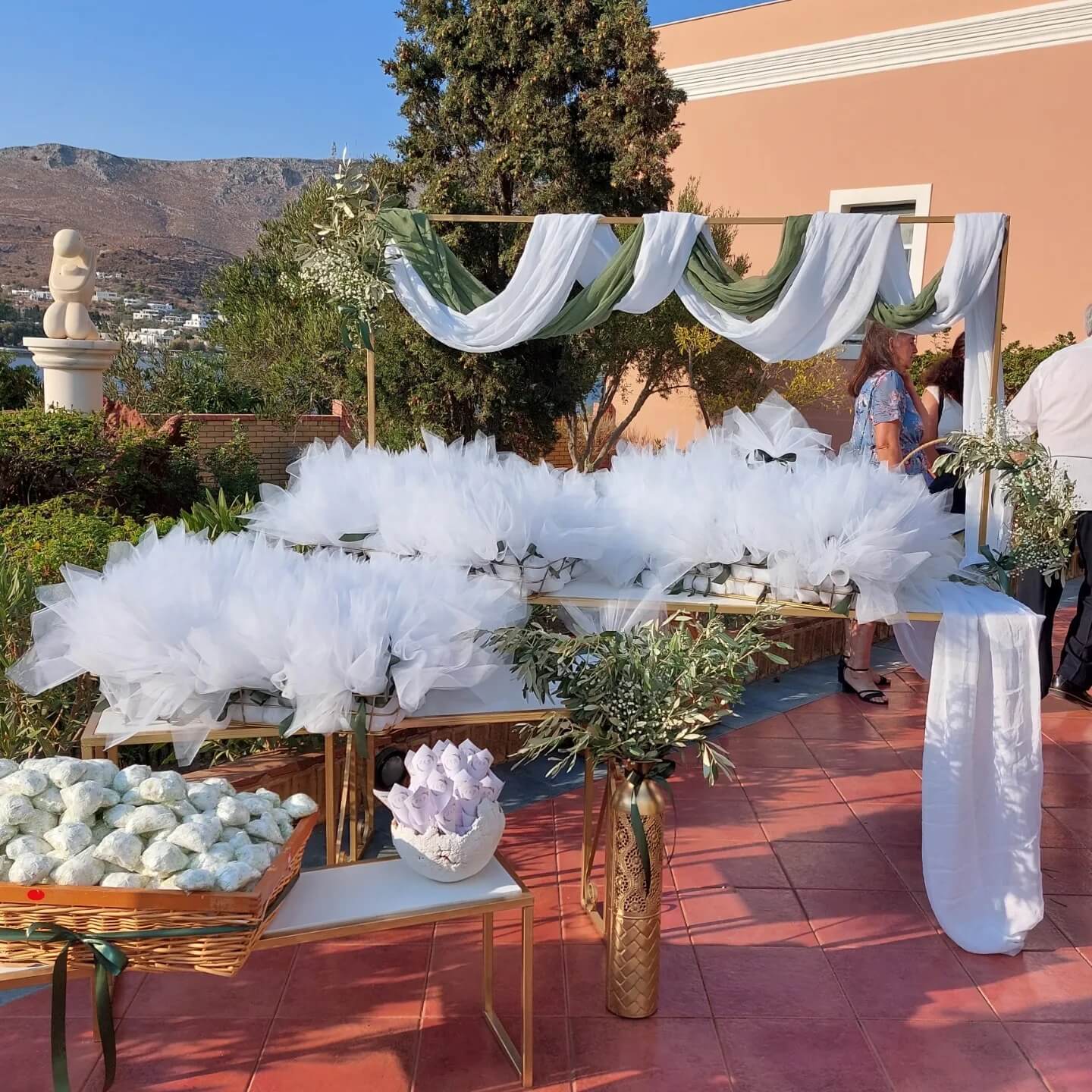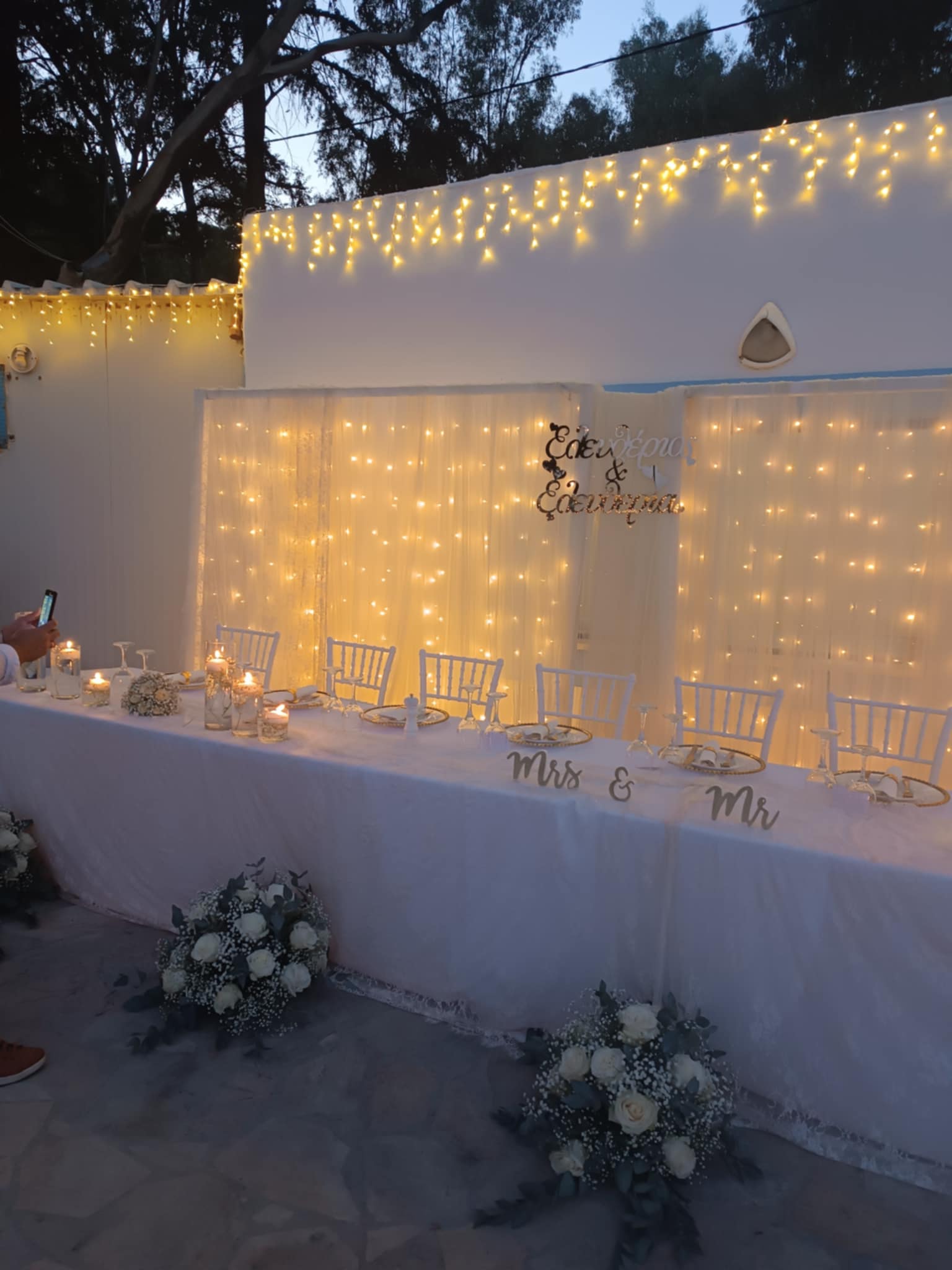 Υφάσματα, κορδέλες που ανεμίζουν, κεριά, φαναράκια, λουλούδια και άλλα πολλά μπορούν να δημιουργήσουν ένα παραμυθένιο σκηνικό για το γάμο σας. Αρκεί να μας αφήσετε να τον οργανώσουμε! Παντρεύεστε στην Λέρο ή σε άλλο νησί της Δωδεκανήσου; Ας τα φτιάξουμε όλα… τέλεια, για την ωραιότερη μέρα της ζωής σας!