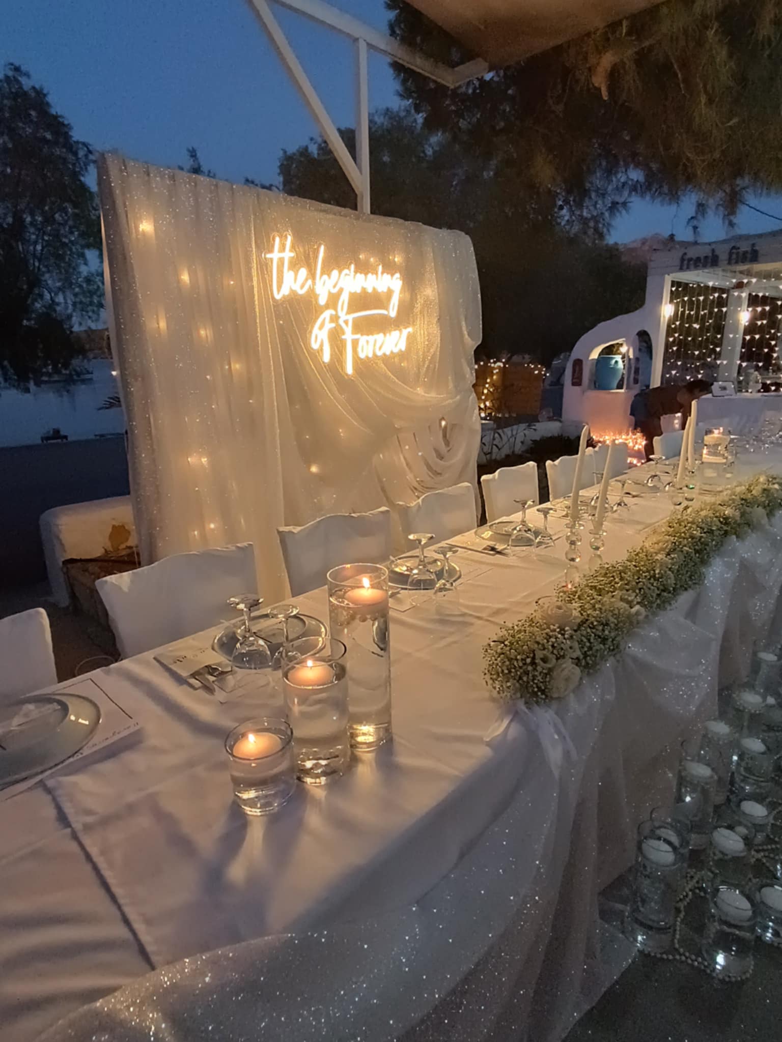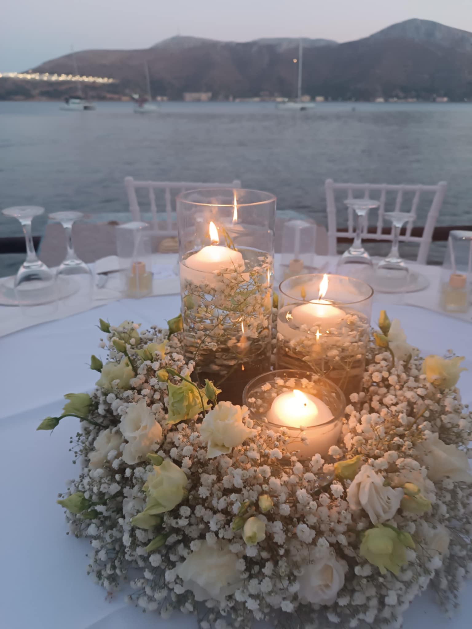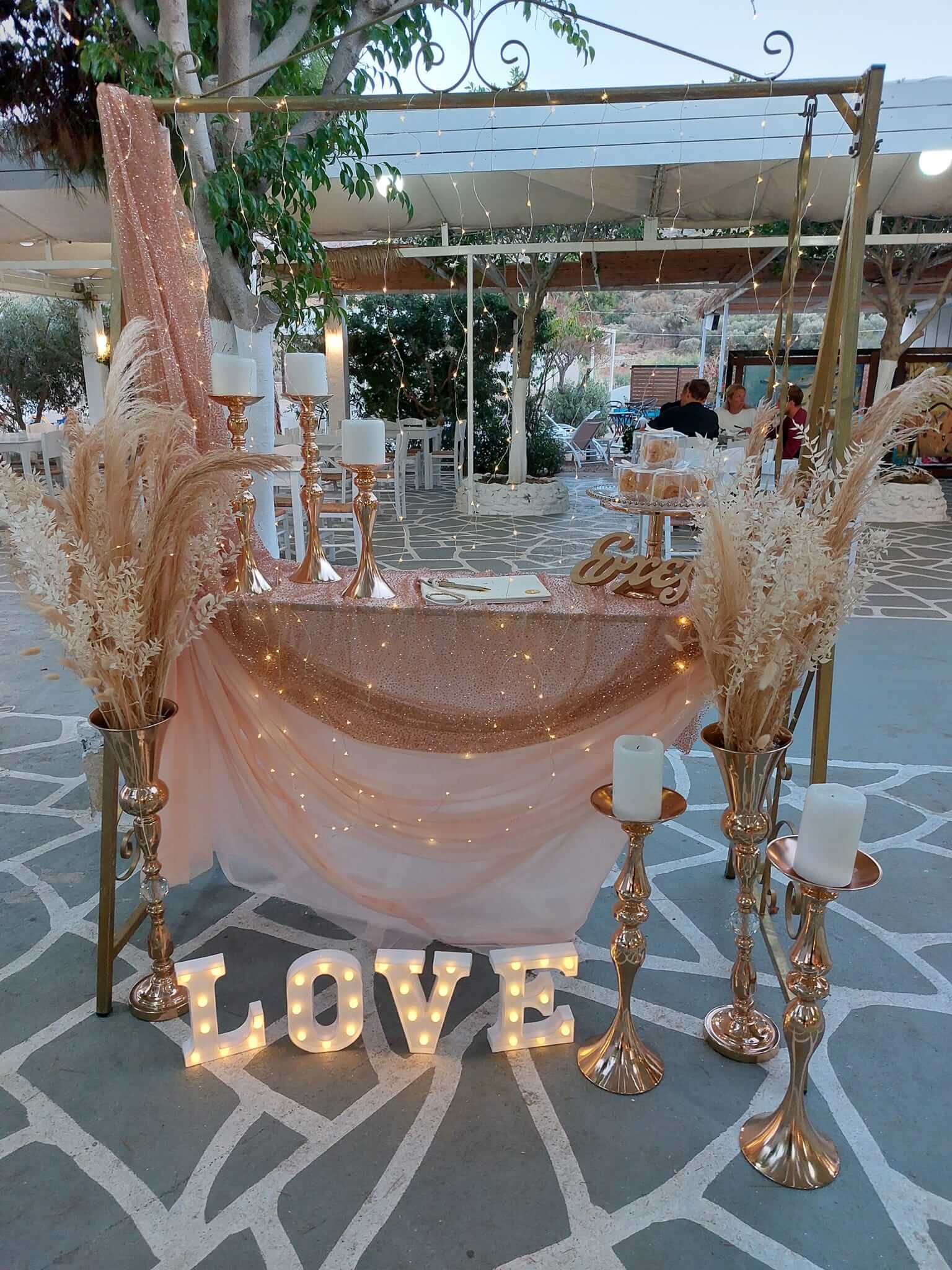 Υφάσματα, κορδέλες που ανεμίζουν, κεριά, φαναράκια, λουλούδια και άλλα πολλά μπορούν να δημιουργήσουν ένα παραμυθένιο σκηνικό για το γάμο σας. Αρκεί να μας αφήσετε να τον οργανώσουμε! Παντρεύεστε στην Λέρο ή σε άλλο νησί της Δωδεκανήσου; Ας τα φτιάξουμε όλα… τέλεια, για την ωραιότερη μέρα της ζωής σας!